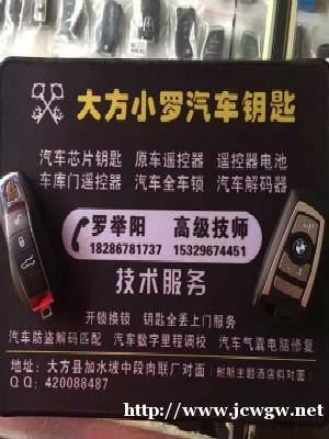 大方小罗汽车钥匙开锁公司24小时开锁电话:180-8575-8585,罗师傅,是经工商注册、公安备案、税务登记的合法锁具开修服务单位。是专 业修锁及配钥匙、汽车芯片遥控钥匙匹配等业务为一体的专业锁具安防公司。
